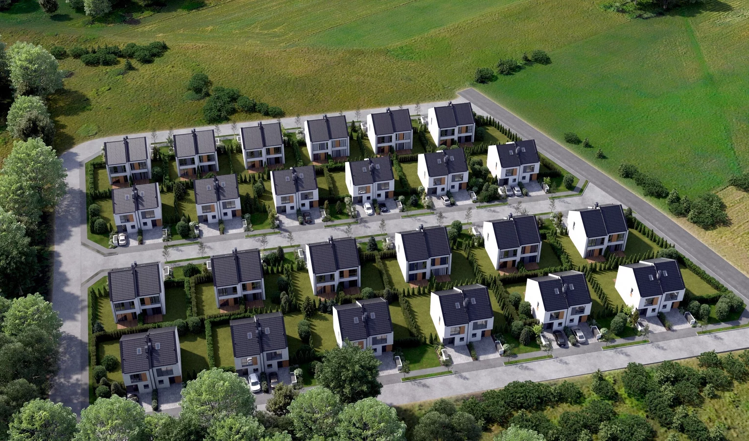Osiedle będzie się składać z 24 budynków dwulokalowych co przekłada się na 48 odrębnych segmentów o powierzchni 84,7m2.