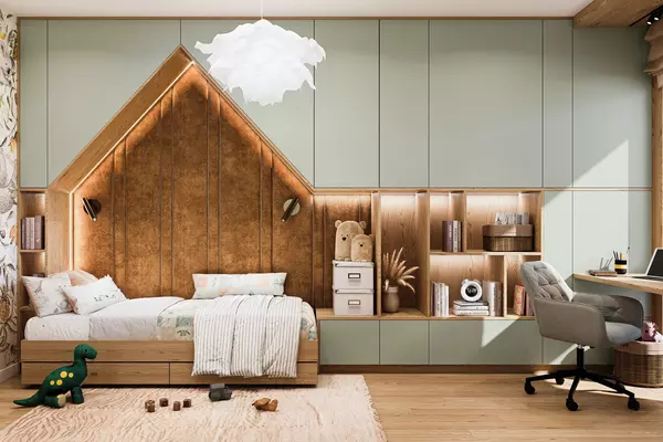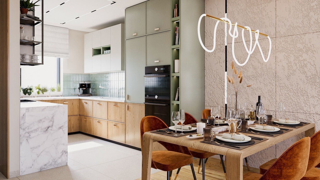 - Dom z 3 sypialniami, salonem, kuchnią, dwiema łazienkami i wiatrołapem.