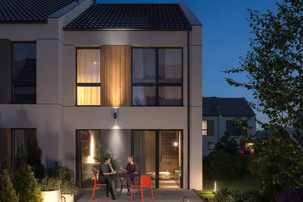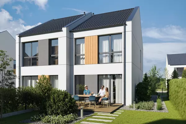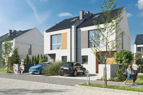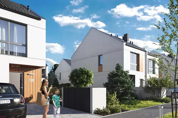Spójnie zaprojektowany kompleks mieszkalny cechuje się nowoczesną i prostą bryłą.